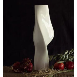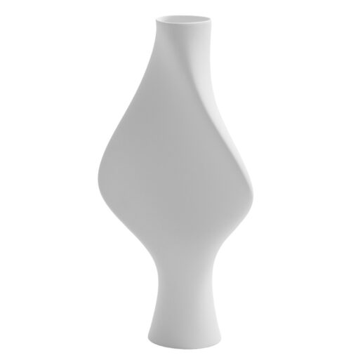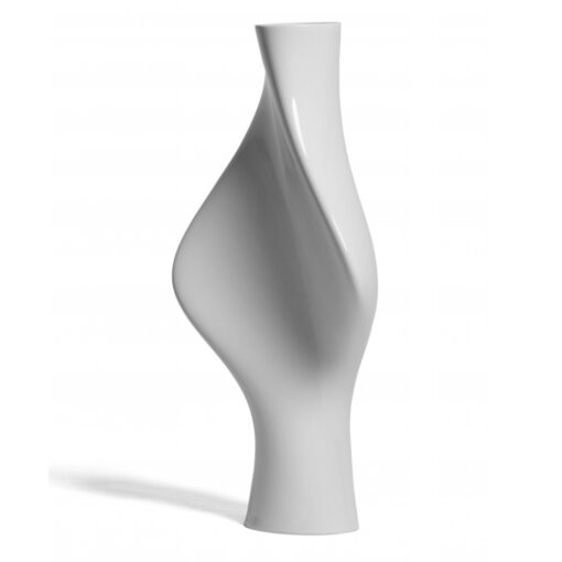ADORNO MODELO ELEGY BLANCO. LOS JARRONES DE CLARAVAL SON UNA HUELLA TRIDIMENSIONAL Y MATERIAL DE LA VOZ DE LA CANTANTE PORTUGUESA SÓNIA TAVARES GRABADA DENTRO DE LOS MUROS DE LA ABADÍA CISTERCIENSE DE ALCOBAÇA PORTUGAL CONSTITUYENDO UN REGISTRO ÚNICO DE ESTA EXPERIENCIA MUSICAL. LAS FORMAS SON IMPULSADAS HACIA EL ESPACIO 3D MEDIANTE FRECUENCIAS RITMOS Y ARMONIAS. LA TERMINACION UN FIEL REFLEJO DE LAS RELACIONES ARMONICAS SE IMPRIME EN 3D PARA QUE SIRVA COMO PROTOTIPO PARA LA PRODUCCION