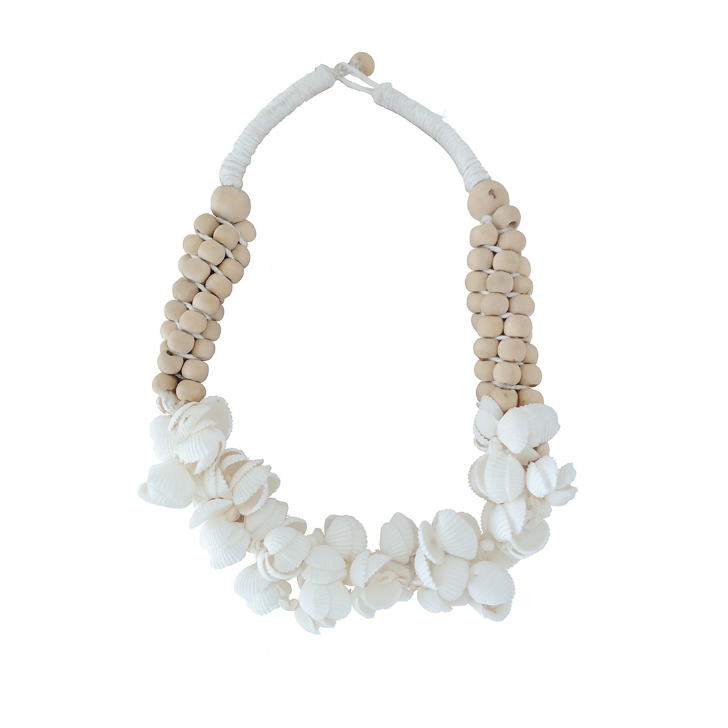 COLLAR MODELO NAGINI REALIZADO EN CUENTAS DE MADERA Y CUERDA.