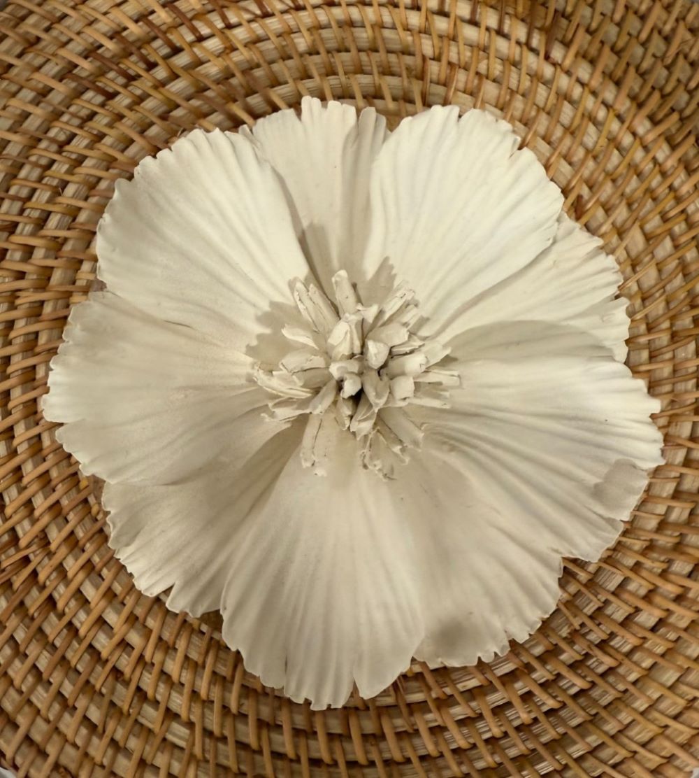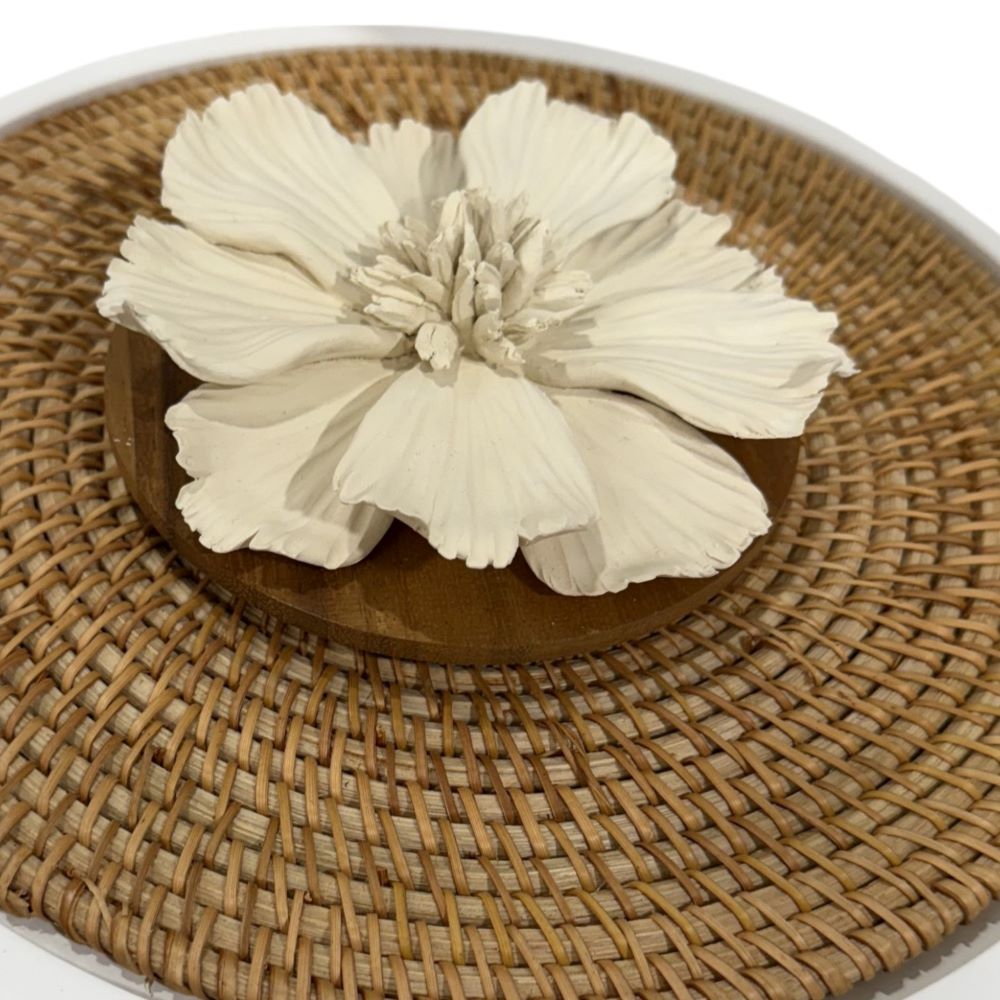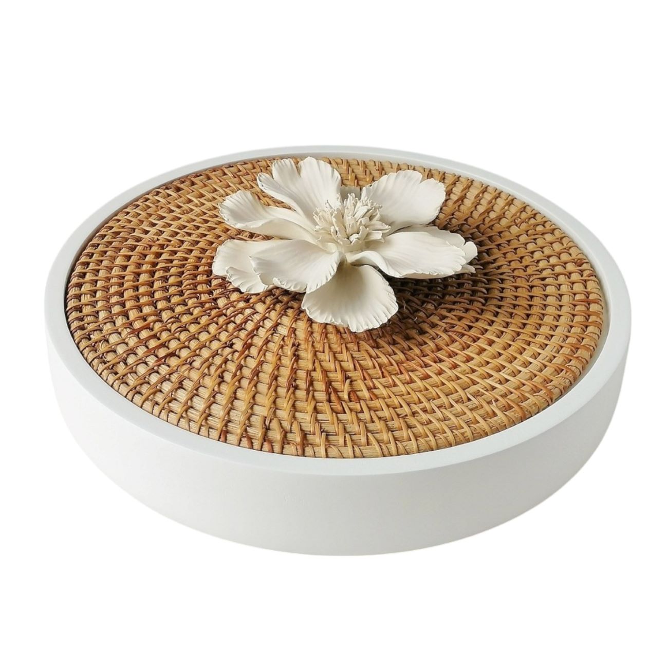 CAJA DE MADERA VILLAGE ESTRUCTURA DE MADERA BLANCA Y TAPA DE RATTAN CON FLOR COSMOS NATURAL