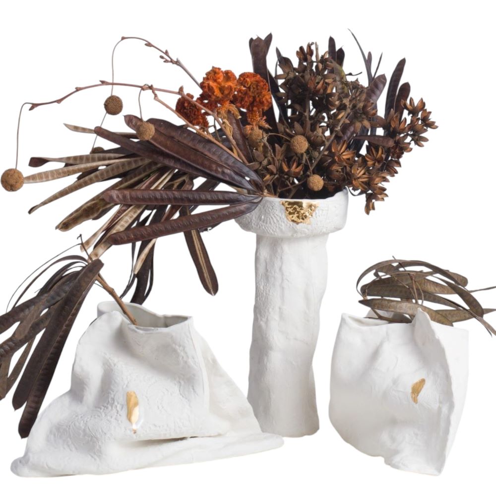 ADORNO DE PORCELANA Y PINTURA DE ORO DE LA SERIE » CAMINOS INESPERADOS»