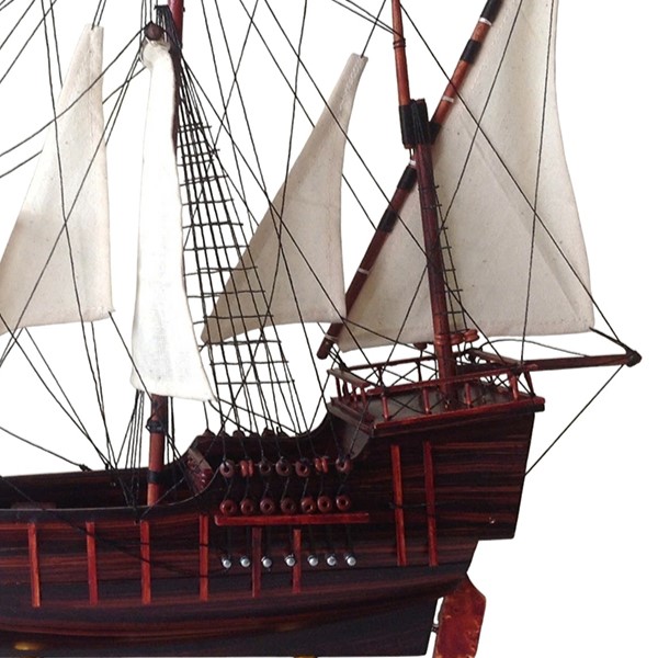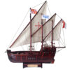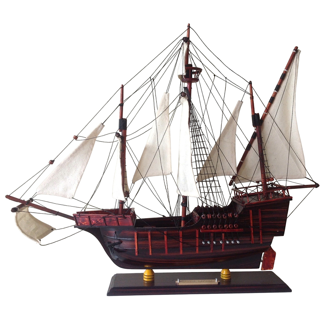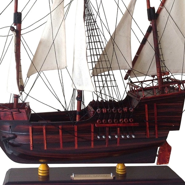 BARCO LA SANTA MARIA. SE CONSTRUYÓ EN PONTEVEDRA GALICIA EN EL NOROESTE DE ESPAÑA. PROBABLEMENTE ERA UNA NAU (CARRACA) DE TAMAÑO MEDIANO DE UNOS 17 7 M DE ESLORA CUBIERTA Y SEGÚN JUAN ESCALANTE DE MENDOZA EN 1575 PESABA POCO MÁS DE 100 TONELADAS (UNAS 100 TONELADAS O TUNS) Y FUE UTILIZADA COMO BUQUE INSIGNIA DE LA EXPEDICIÓN. LA SANTA MARÍA TENÍA UNA SOLA CUBIERTA Y TRES MÁSTILES.