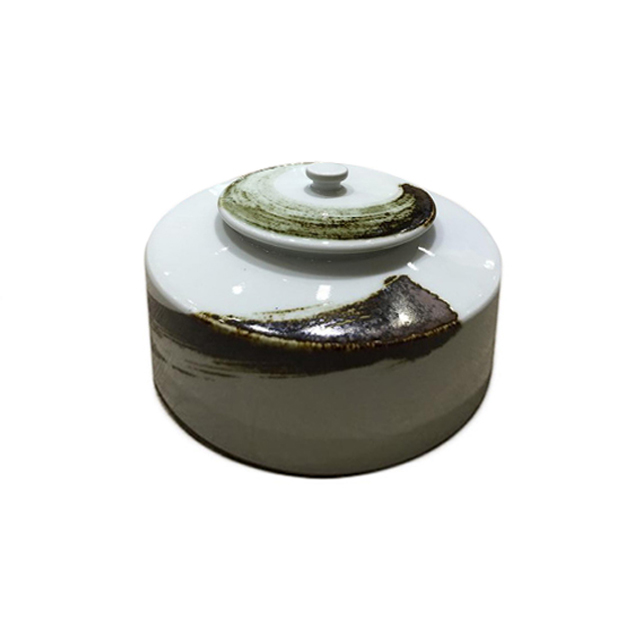 ADORNO DE CERAMICA BLANCO Y MARRON CON PINCELADA 22YF05A