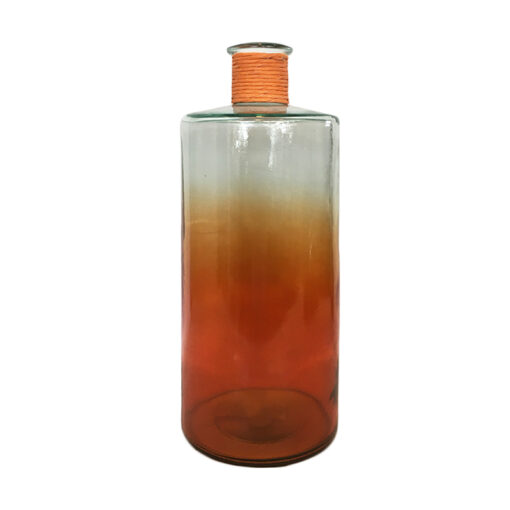 JARRON DE VIDRIO RECICLADO DEGRADÉ NARANJA A TRANSPARENTE.LA CADENA DE RECICLADO DEL VIDRIO ES UN CÍRCULO PERFECTO EN EL QUE LOS ENVASES VUELVEN A LA VIDA INFINITAS VECES ES UN CLARO EJEMPLO DE SOSTENIBILIDAD. NO SE UTILIZA NINGÚN TIPO DE ADITIVO SOLAMENTE VIDRIO RECICLADO 100% POST-CONSUMO CON CERTIFICACIÓN GRS. SE NECESITA UNA TEMPERATURA MÁS BAJA PARA FUNDIR EL VIDRIO RECICLADO Y POR LO TANTO SE AHORRA MUCHA ENERGÍA LOS RESIDUOS QUE VAN AL VERTEDERO SE REDUCEN DRÁSTICAMENTE Y LAS EXTRACCIONES DE ARENA Y MATERIAS PRIMAS SE MINIMIZAN.