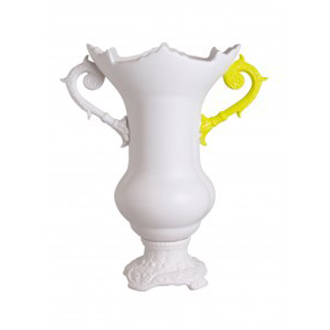 ANFORA MODELO VERSAILLES FLUO. PORCELANA BLANCA 1 ASA AMARILLA Y 1 ASA BLANCA