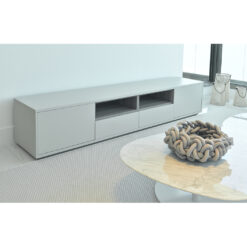 APARADOR MODELO PIXEL. BAJO. COLOR SMOKE GREY OPTIMIZADA Y ELEGANTE EN ESTÉTICA EL APARADOR PIXEL OFRECE UN AMPLIO ESPACIO DE ALMACENAMIENTO SIN SER DEMASIADO VOLUMINOSA. CON UN HERMOSO ACABADO EN LACADO TOSCANO MATE EL DISEÑO PIXEL BRINDA UNA ORGANIZACIÓN LIMPIA Y CONTEMPORÁNEA A CUALQUIER ESPACIO. EL EXQUISITO INTERIOR DE MELAMINA DE MADERA FLOTANTE AGREGA UN ELEMENTO ORGÁNICO DE CALIDEZ. ESTE DISEÑO MUESTRA EL JUEGO INTELIGENTE DEL ESPACIO Y LOS MATERIALES PROPORCIONANDO UNA FUSIÓN PERFECTA DE ESTILO Y PRACTICIDAD.