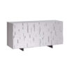 APARADOR MODELO LABYRINTH. APARADOR EN MADERA LACADA BLANCO MATE (OP7) CON PUERTAS RÍGIDAS DE POLIURETANO. PATAS DE ACERO INOXIDABLE PULIDO BARNIZADO BLANCO (OP71). ESTANTES INTERNOS EN VIDRIO TRANSPARENTE.
