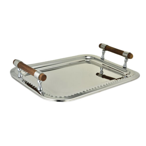 BANDEJA RECTANGULAR DE ACERO CON ASAS DE MADERA
