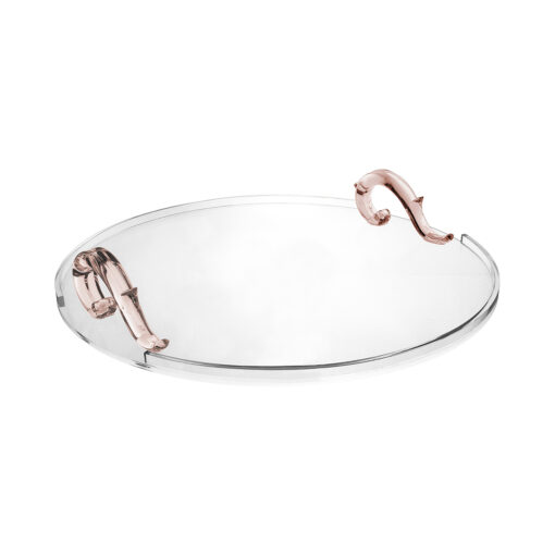 BANDEJA REDONDA BELLE EPOQUE ACRILICO CON ASA DE COLOR ROSADA