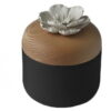 CAJA DE MADERA Y CERAMICA PARTE INFERIOR DE CERAMICA GRIS SUPERIOR MADERA Y FLOR DE CERAMICA BLANCA
