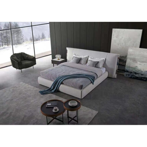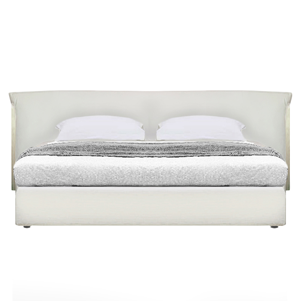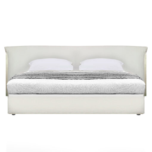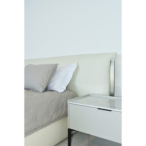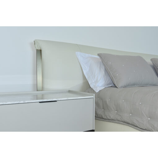 CAMA DE DOS PLAZAS MODELO HEBRON. COMPLETA. PARA COLCHON DE 180 x 200 TAPIZADA EN CUERO ALMOHADON RELLENO CON PLUMAS