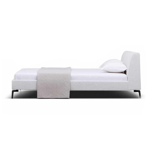 CAMA MODELO ALISON. ESTRUCTURA EN ACERO CABECERA Y ARO DE PARRILLA TAPIZADO EN TELA A523-1A MEDIDA AMERICANA DE PARRILLA 153 X 203. LA CAMA ALISON PLUS IRRADIA UNA ELEGANCIA SILENCIOSA CON SU ELEGANTE ESTRUCTURA SU CABECERA BIEN FORMADA Y SUS PATAS DE METAL OSCURO. LA CABECERA SUAVEMENTE AHUSADA ESTÁ FORMADA POR ABEDUL MACIZO QUE ESTÁ CUBIERTO CON UNA ESPUMA DE POLIURETANO Y FORRADO CON TELA. LOS RIELES TAMBIÉN ESTÁN COMPLETAMENTE TAPIZADOS Y ACOLCHADOS PARA UNA MÁXIMA COMODIDAD.