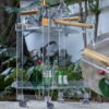 CARRO MODELO HARMON. TAPA EN MÁRMOL Y ESTRUCTURA EN ROBLE. LOS ESTANTES ABIERTOS AUMENTAN EL ESPACIO DE ALMACENAMIENTO Y SUS RUEDAS UNIVERSALES EN LA PARTE INFERIOR PERMITEN UN MOVIMIENTO FLEXIBLE PARA SU TRASLADO.