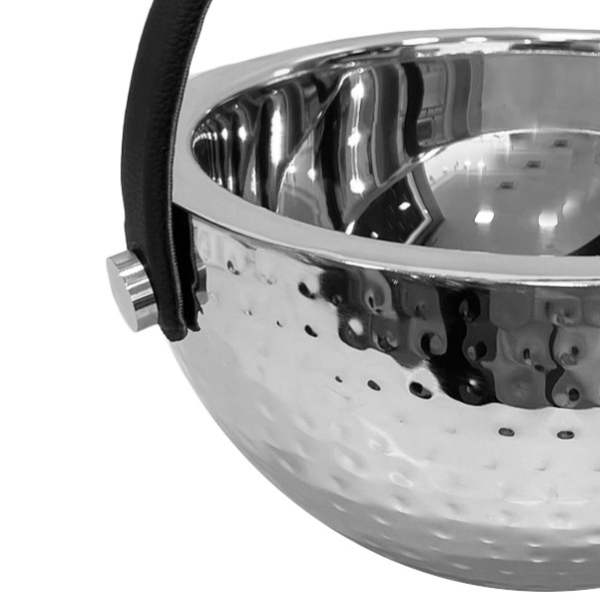 CHAMPAGNERA DE ACERO DOBLE PARED MARTILLADA CON ASA DE CUERO NEGRA