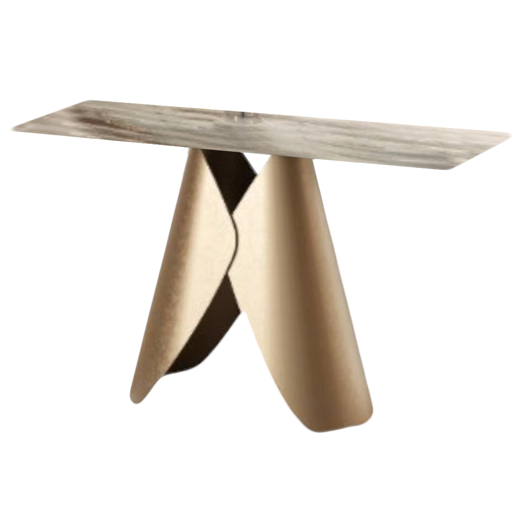 CONSOLA CON TAPA DE CERÁMICA Y BASE EN METAL COLOR VISON