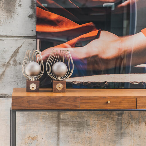 CONSOLA MODELO PLIEDE. CON TAPA EN MADERA Y BASE METALICA