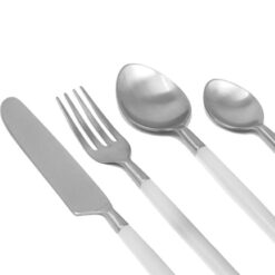 SET DE 24 CUBIERTOS MANGO BLANCO Y ACERO: