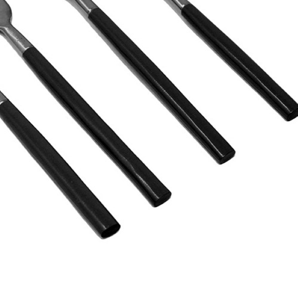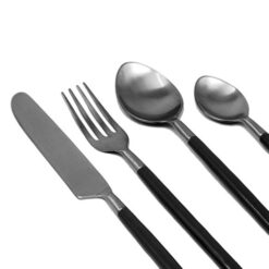 SET DE 24 CUBIERTOS MANGO NEGRO Y ACERO: 6 CUCHILLOS 6 TENEDORES 6 CUCHARAS Y 6 CUCHARITAS