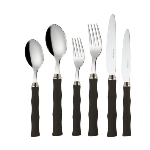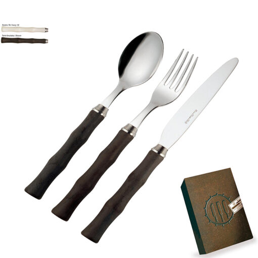 JUEGO DE CUBIERTOS 36 PIEZAS MODELO ACQUA MARRON. ACQUA ES UNA COLECCIÓN DE CUBIERTOS DE ACERO INOXIDABLE 18/10 CON ACABADO PULIDO Y MANGO DE ACRÍLICO CON VIROLA TORNEADA.