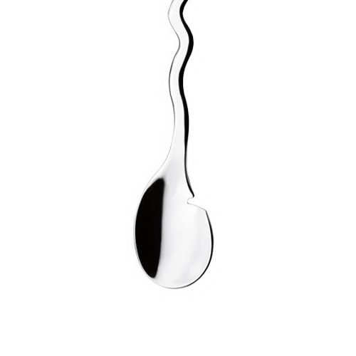 CUCHARITA CEREALI. EN ACERO INOXIDABLE 18/10 CON UN ACABADO PULIDO. EL PULIDO ESPEJO DE LA CUBERTERÍA ES UN PROCESAMIENTO DE SUPERFICIES MEDIANTE EL CUAL CON EL USO DE RODILLOS ESPECIALES Y PASTAS ABRASIVAS DE GRANO MUY FINO SE OBTIENE EL BRILLO REQUERIDO. SE CARACTERIZA POR UNA FORMA PARTICULAR DEL MANGO QUE EVOCA LAS SINUOSAS CURVAS DE UNA SERPIENTE. ES UN MANGO ORIGINAL E IRÓNICO PARA UN ARTÍCULO DEDICADO A MOMENTOS DE RELAJACIÓN Y DE COMPARTIR.