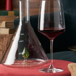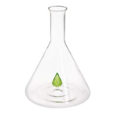 LAB ES UN DECANTADOR DE VINO QUE RETOMA LA FORMA ARQUETÍPICA DE LA BOTELLA DE VIDRIO DE LABORATORIO. UNA GOTA QUE CAE CREA CÍRCULOS CONCÉNTRICOS EN LA BASE DEL DECANTADOR EN UN JUEGO ILUSORIO ENTRE EL LÍQUIDO DEL INTERIOR Y EL VASO. LA GOTA DE VIDRIO COLOREADO SE CONVIERTE EN EL ELEMENTO CARACTERIZADOR DEL PROYECTO. CUANDO NO SE UTILIZA ES UN OBJETO DECORATIVO QUE RECUERDA LA FUNCIÓN DE CONTENER LÍQUIDOS MIENTRAS QUE SI SE LLENA DE VINO HACE EMERGER LA GOTA COLOREADA AL VACIARSE CAMBIANDO DE ASPECTO CADA VEZ QUE DISMINUYE LA CANTIDAD PRESENTE.