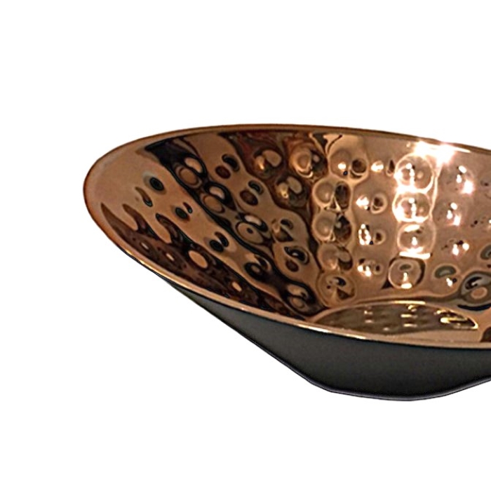 ENSALADERA OVALADA DOBLE PARED DE ACERO PINTADA DE NEGRO EXTERIOR Y COBRE EN EL INTERIOR