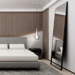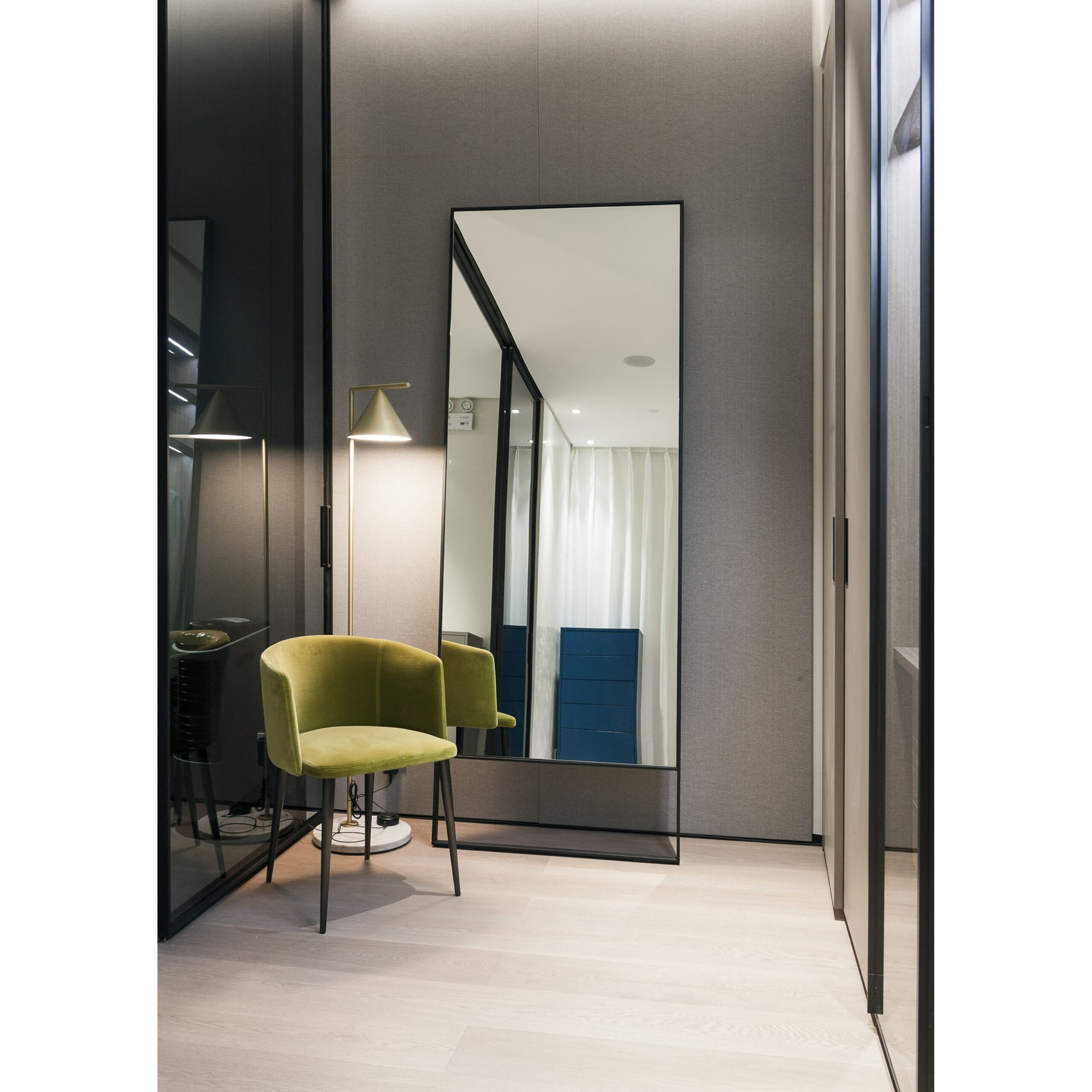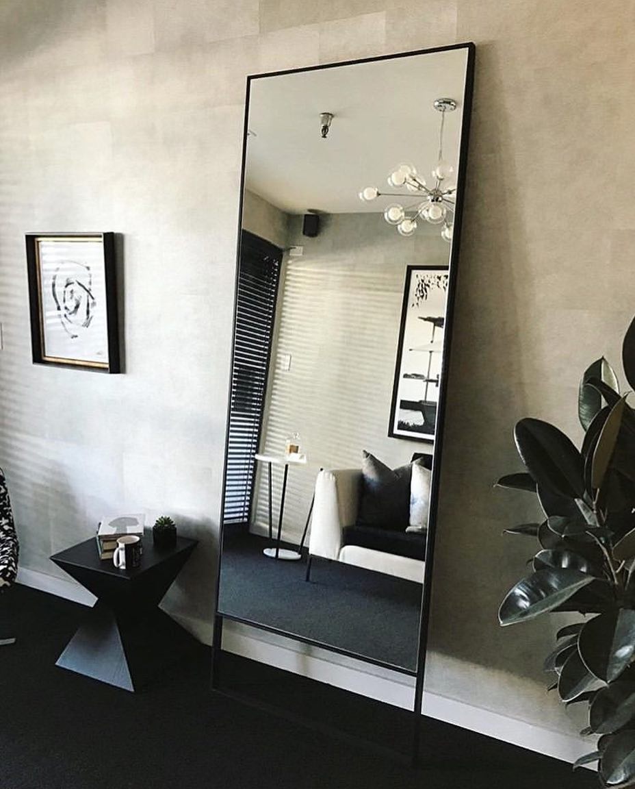 ESPEJO MODELO BELL. ES UN ESPEJO INCLINADO CONTEMPORÁNEO DE GRAN TAMAÑO DE CUERPO ENTERO CON UN MARCO DE METAL ENNEGRECIDO Y UNA BASE ABIERTA PARA UN EFECTO FLOTANTE PARA CREAR LIGEREZA EN SU ESPACIO. LAS LÍNEAS ARQUITECTÓNICAS DELGADAS Y EL DISEÑO SIMPLE Y MINIMALISTA COMPLEMENTAN CUALQUIER HABITACIÓN.