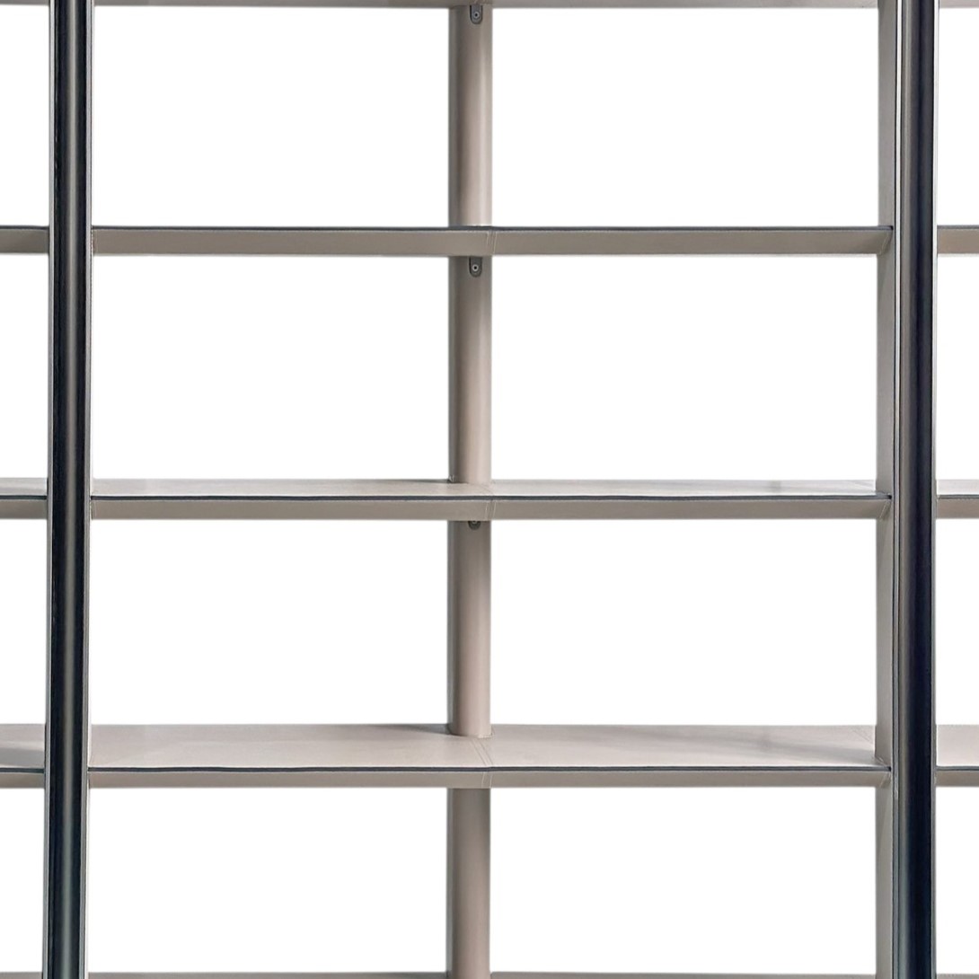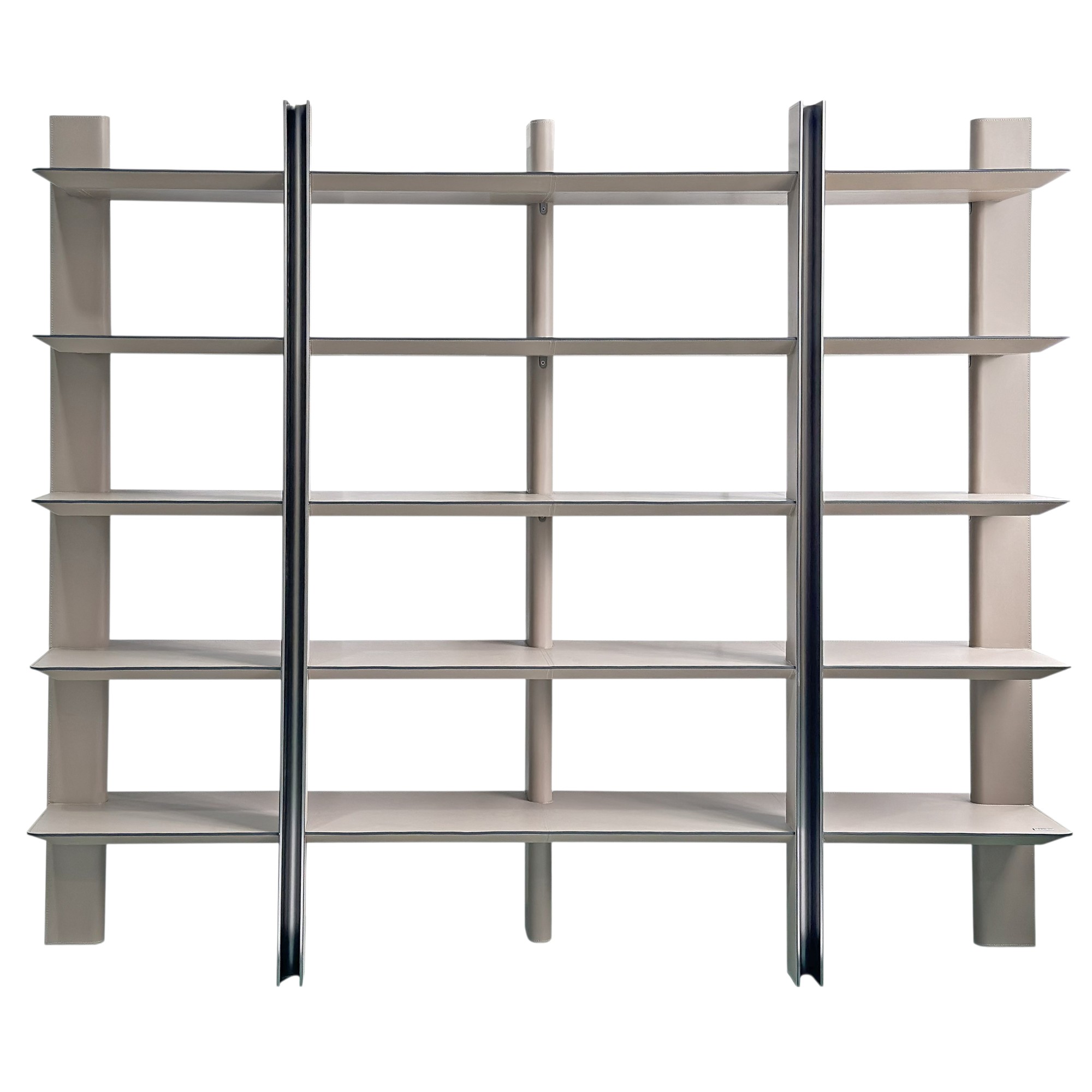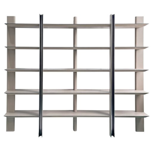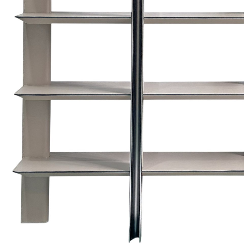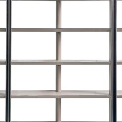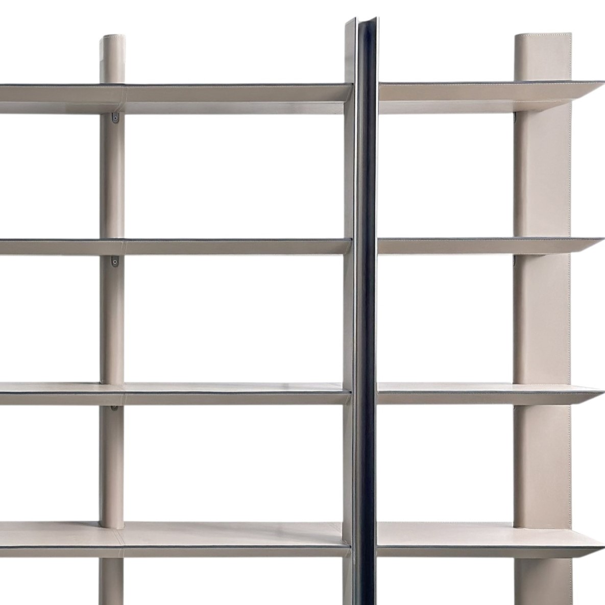 ESTANTERÍA ESTRUCTURA METAL FORRADA EN ECOCUERO SOLETA COLOR CAMEL.