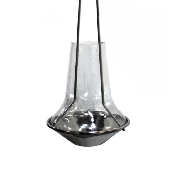 CANDELABRO DE ACERO Y VIDRIO PARA COLGAR