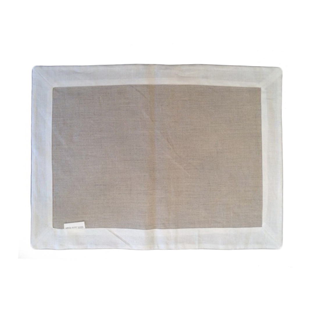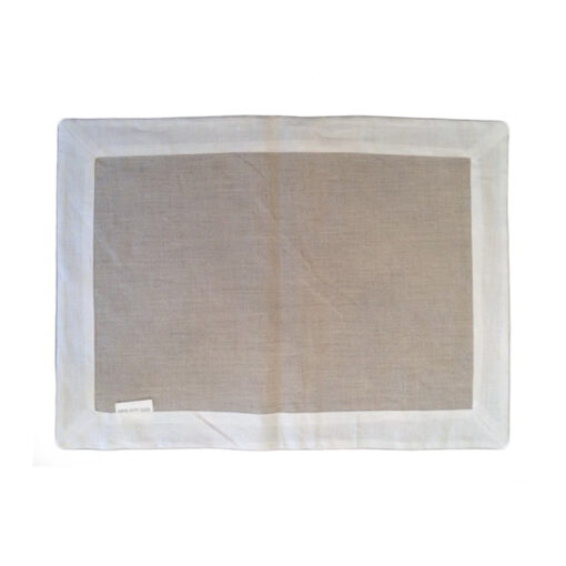 INDIVIDUAL DE LINO BEIGE CON BORDE BLANCO 50 X 35 CM