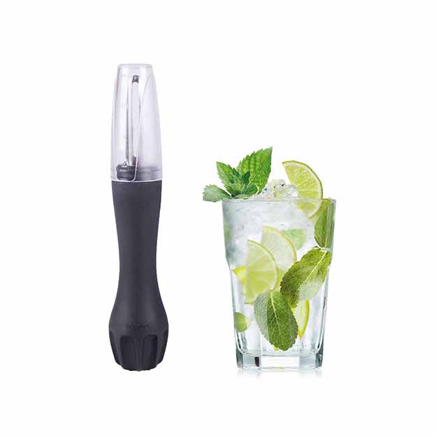 SET MOJITO CAIPIRINHA: 1 MORTERO PELADOR Y MEDIDOR + 2 VASOS