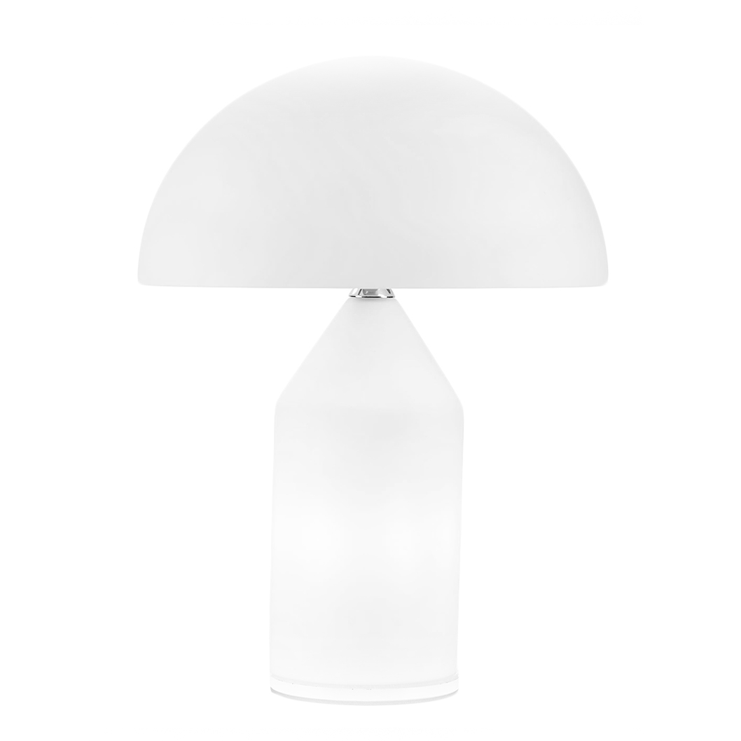 LÁMPARA DE MESA MODELO FUNGHI. EL SECRETO DE LA LÁMPARA FUNGHI RESIDE PRINCIPALMENTE EN LA CONSTRUCCIÓN GEOMÉTRICA DE SUS FORMAS: EL CONO EN EL CILINDRO Y LA SEMIESFERA. APARTE DE SU ESPECTACULAR DISEÑO UNA DE SUS PRINCIPALES CARACTERÍSTICAS ES SU MATERIAL TANTO DE LA PANTALLA COMO EL DE LA BASE: CRISTAL TRASLUCIDO BLANCO.