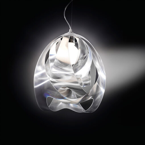 LAMPARA DE TECHO MODELO GOCCIA. DISEÑADA POR STEFANO PAPI. EL CUERPO LUMINOSO CON SU SIGNO DE IDENTIDAD SIGUE LA FORMA FLUIDA Y LIGERA DEL AGUA. GRACIAS A UN DISEÑO ÚNICO GOCCIA REVELA AL MISMO TIEMPO SU PARTICULARIDAD: LA FUENTE LUMINOSA. LA LÁMPARA JUEGA CON LA LUZ REGALANDO EFECTOS Y REFLEJOS EXTRAORDINARIOS. LÍQUIDA PERO COMPACTA SUAVE Y BRILLANTE DA VIVACIDAD A LOS AMBIENTES DOMÉSTICOS Y DECORA ESPACIOS AMPLIOS Y SINUOSOS.