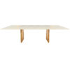 MESA LATERAL MODELO DEFENSE. CON BASE EN MADERA ROBLE NATURAL Y TAPA DE MARMOL CALACATA