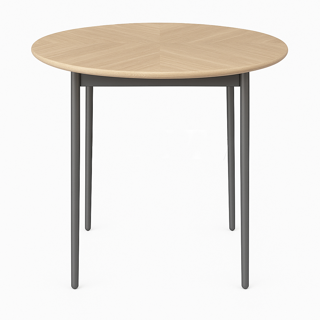 MESA REDONDA LATERAL CON BASE EN ACERO NEGRO Y TAPA DE MADERA CLARITA