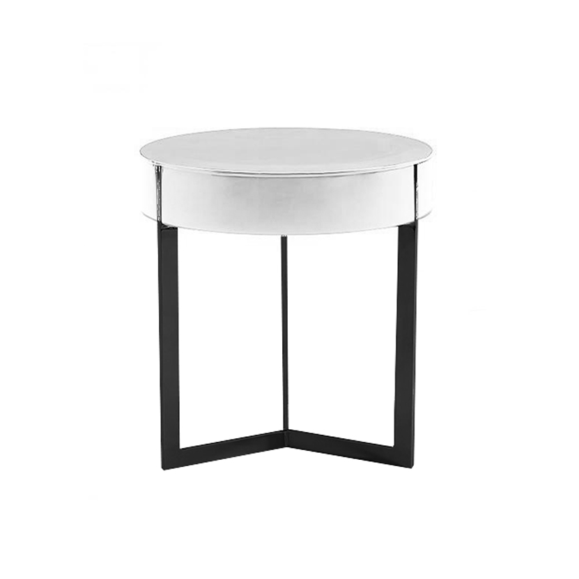 MESA DE LUZ MODELO YEMI. REDONDA. CON ESTRUCTURA EN ACERO INOXIDABLE GRIS OSCURO Y PINTADA EN LACA COLOR BLANCO OPACO