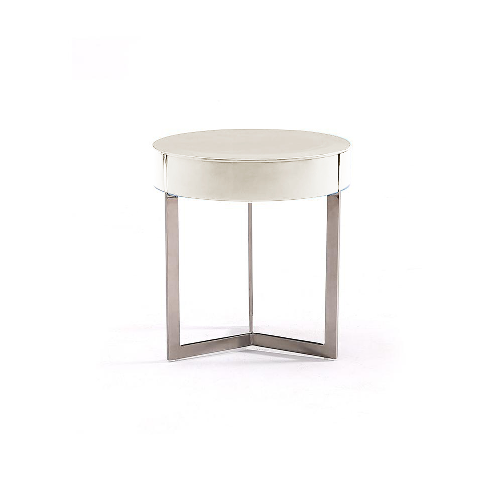 MESA DE LUZ MODELO YEMI. REDONDA. CON ESTRUCTURA EN ACERO INOXIDABLE GRIS OSCURO Y PINTADA EN LACA COLOR GRIS OPACO