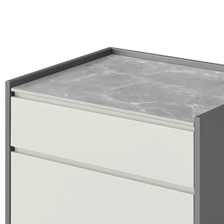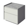 MESA DE LUZ CON DOS CAJONES PINTADA EN LACA COLOR VISON Y TAPA DE CERAMICA