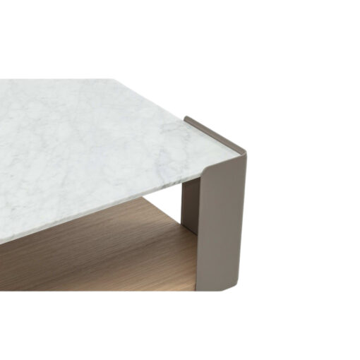 MESA DE LIVING MODELO RUBIX CUADRADA CON ESTANTE INFERIOR EN MADERA DE HAYA CLARITA Y TAPA SUPERIOR EN MARMOL CARRARA BLANCO. IRRADIA UNA ELEGANCIA SOBRIA. ATREVIDA MAJESTUOSA Y SEGURA LA MESA DE CENTRO RUBIX ESTÁ DISEÑADA A LA PERFECCIÓN SUS PATAS OCULTAS LE DAN UN TOQUE DE DISTINCIÓN. TABLERO EN MÁRMOL CARRARA BASE EN CHAPA DE ROBLE NATURAL OAK PATAS OCULTAS ESTRUCTURA DE ACERO TAPIZADA EN ECOPIEL COLOR TOPO