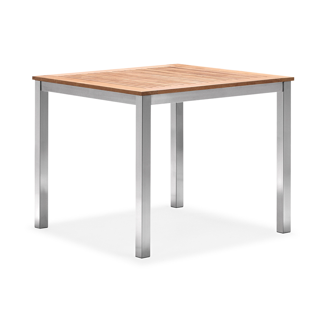 MESA DE COMEDOR MODELO STYLE. CUADRADA. ESTRUCTURA EN ACERO INOXIDABLE Y MADERA DE TEKA DE BURMA