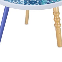 MESA AUXILIAR MODELO CAPRI. PARA SALÓN O TERRAZA CON TAPA DE MELAMINA DIÁMETRO 60 CM ALTO 43 CM. ESTÁ INSPIRADA EN LA FAMOSA CERÁMICA DE CAPRI CON SUS DECORACIONES QUE REFLEJAN LOS COLORES DEL MAR. LA BASE CONSTA DE 2 PATAS COLOR MARRÓN CLARO Y UNA EN AZUL PARA DARLE UN TOQUE PERSONAL Y DIFERENCIADO SEGÚN EL MOBILIARIO Y EL GUSTO PERSONAL. LA TAPA DE MELAMINA HACE QUE ESTA MESA DE CENTRO SEA LIVIANA Y FÁCIL DE MOVER.
