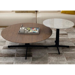 MESA LATERAL MODELO VARY. REDONDA. TAPA DE MÁRMOL DE CARRARA BLANCO Y PATAS DE ACERO CON ACABADO METÁLICO NEGRO CUBIERTA CON DESLIZADORES PARA PROTEGER LOS PISOS DE MADERA. DECIDIDAMENTE CONTEMPORÁNEAS CON RAÍCES CLÁSICAS MODERNAS VARY COMBINA LÍNEAS LIMPIAS CON UNA LLAMATIVA POSTURA DE BASE CRUZADA.