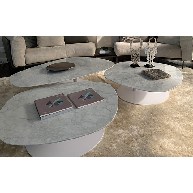 MESA DE LIVING MODELO LEM. CON FORMA DE PIEDRA TAPA DE MARMOL CARRARA COLOR BLANCO