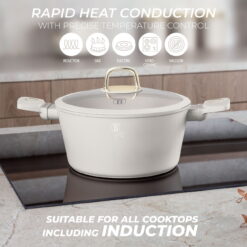 OLLA CON TAPA Y AGARRADERA DIAM 24 CM DE 4.1L MODELO SAHARA. HECHO DE ALUMINIO FORJADO DE ALTA CALIDAD CON UN REVESTIMIENTO TITANPRO ANTIADHERENTE DURADERO LO QUE GARANTIZA UNA EXPERIENCIA DE COCCIÓN IMPECABLE Y TRANSFORMA SU COCINA EN UN OASIS DE CALMA Y SOFISTICACIÓN. COLOR CREMA MATE QUE ENCARNA UN ESTILO MINIMALISTA CON UN ACABADO MATE QUE EVOCA LA BELLEZA SERENA Y PRÍSTINA DE LAS ARENAS DEL DESIERTO. ES ADECUADO PARA TODO TIPO DE PLACAS Y SE ADAPTA A UNA GRAN CANTIDAD DE ESTILOS DE COCINA. LIBRE DE PFOA PLOMO Y CADMIO SALVAGUARDANDO SU SALUD Y EL MEDIO AMBIENTE.