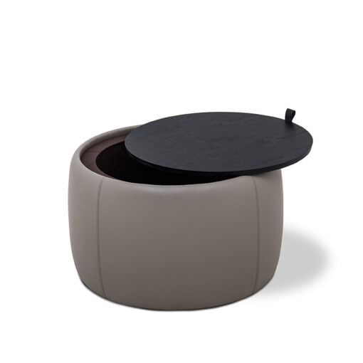 POUFF MODELO DRUM. FORRADO EN CUERO FC08 Y TAPA MOVIBLE EN MADERA. CON UN DISEÑO DIVERTIDO Y EXUBERANTE EL POUFF DRUM ES UNA PIEZA INVENTIVA Y ADAPTABLE ÚTILES COMO OTOMANO O MESA AUXILIAR. OCULTA UN ESPACIO DE ALMACENAMIENTO Y ADEMAS FUNCIONA PERFECTAMENTE COMO MESA AUXILIAR COMPACTA. EL CUERPO DEL TAMBOR ESTÁ CUBIERTO CON MADERA ENCHAPADA DE NOGAL. EL TAMBOR SE FIJA A CINCO RUEDAS GIRATORIAS PARA FACILITAR EL MOVIMIENTO SE VOLTEA LA TAPA DE ESTE TAMBOR A TRAVÉS DE UNA PEQUEÑA CORREA DE CUERO ECOLÓGICO PARA REVELAR UN AMPLIO ESPACIO DE ALMACENAMIENTO.