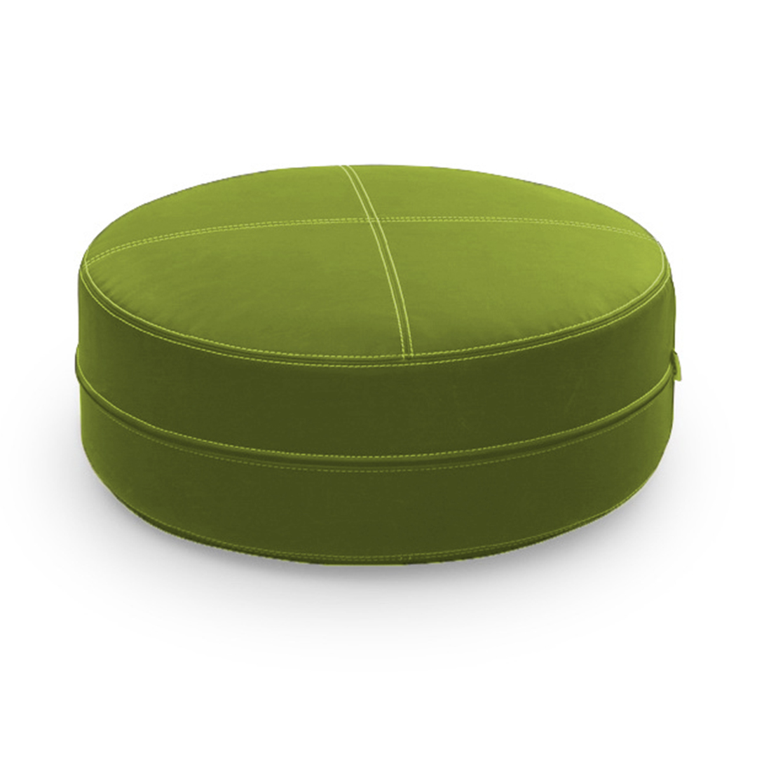 POUFF REDONDO EN TELA COLOR VERDE CON PESPUNTES