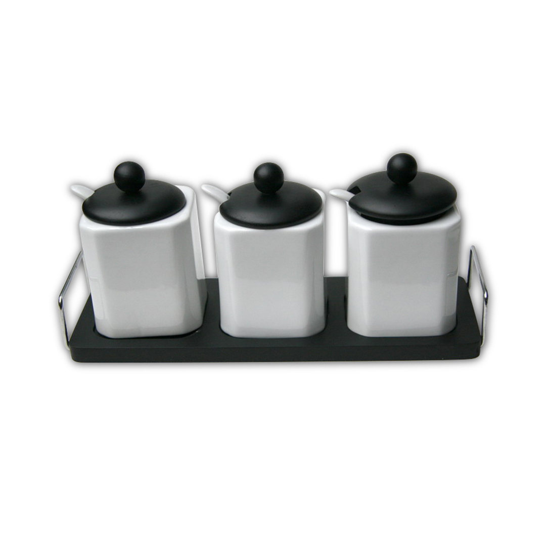 QUESERAS DE CERAMICA SOPORTE DE MADERA ASAS DE METAL SET/3