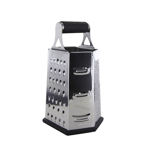 RALLADOR DE 6 CARAS EN ACERO INOXIDABLE 6 TIPOS DE CUCHILLAS DE RALLADO DIFEFENTE. ES UN UTENSILIO QUE TE AYUDA A MEJORAR EL RENDIMIENTO EN TU COCINA. SE PUEDE LIMPIAR FÁCILMENTE.