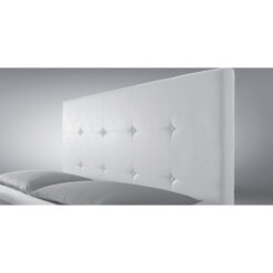 RESPALDO DE CAMA MODELO TRAVIATA. TAPIZADO EN CUERO ECOLOGICO BLANCO. TRAVIATA ES UNA VERSIÓN MODERNA DEL CLÁSICO CABECERO QUE MANTIENE EL CAPITONNÉ PERO INTERPRETÁNDOLO CON SOBRIEDAD Y SE ADAPTA A TODO TIPO DE DECORACIÓN. DE ALTO DISEÑO SON LOS REVESTIMIENTOS DE CUERO ECOLOGICO