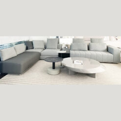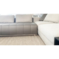 SOFA RINCONERA MODELO GREMPA ESTRUCTURA EN MADERA TAPIZADO EN TELA GRIS EL CUERPO PRINCIPAL CON UN LARGO TOTAL DE 437 CM Y TAPIZADO EN CUERO MARRON LA CHAISE LONGUE LARGO DE LA CHAISE LONGUE 276 CM INCLUYE UNA MESA DE MADERA COLOR MARRON OSCURO EN EL CENTRO
