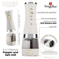 SALERO PIMENTERO ELECTRICO MODELO SAHARA. ACERO INOXIDABLE DE PRIMERA CALIDAD QUE ALBERGA UN MOLINILLO DE CERÁMICA DE ÚLTIMA GENERACIÓN. LA LUZ LED NO ES SÓLO ESTÉTICA AYUDA A SAZONAR CON PRECISIÓN ESPECIALMENTE EN CONDICIONES DE POCA LUZ. UTILIZA 4 PILAS AA (NO INCLUIDAS) LO QUE PROMETE UNA POTENCIA DE MOLIENDA CONSTANTE. MANTENGA INTACTO SU BRILLO EVITE SUMERGIR EN AGUA SIMPLEMENTE LÍMPIELO CON UN PAÑO HÚMEDO.